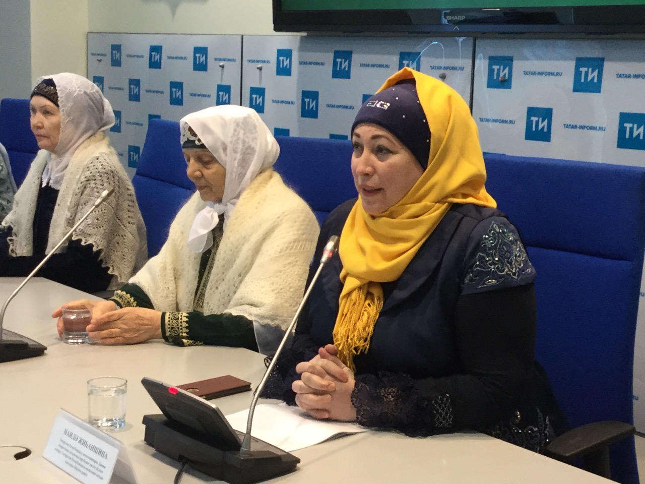 Россия мөслимәләре берлеге рәисе Наилә Җиһаншина журналистлар сорауларына җавап бирә