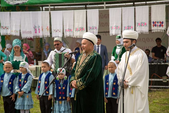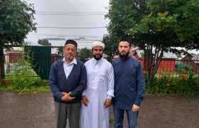 Танылган шәех белән очрашуга район имамнары, Югары Ослан гимназиясе укучылар, мәхәллә халкы һәм...
