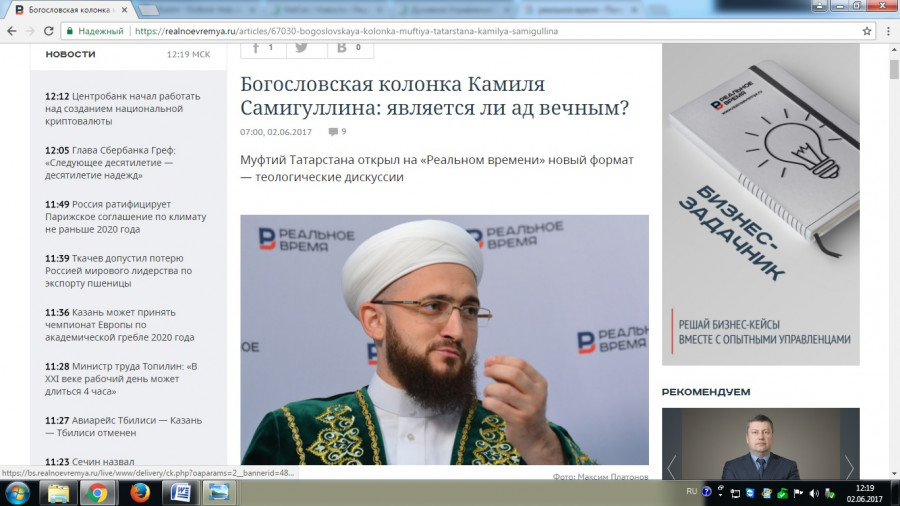 "Реальное время" интернет-газетасында Татарстан мөфтие Камил хәзрәт Сәмигуллинның "Мәңгелекме...