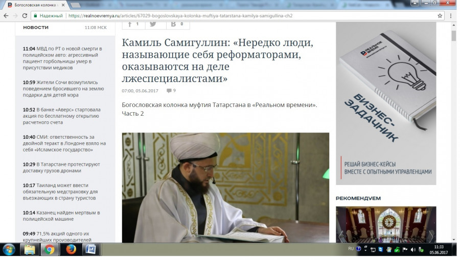 "Реальное время" интернет-газетасында мөфтинең мәкаләсе дөнья күрде