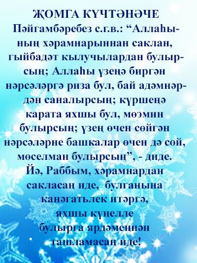 «Әй бәндәләрем, чикле гомерегезне, санаулы көннәрегезне һәм төннәрегезне изгелектә үткәрегез...