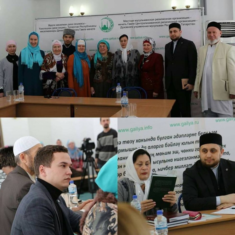 Казанның Гаилә мәчетендә дин әһелләре, галимнәр, иҗтимагый оешма җитәкчеләре, бер өстәл артына...