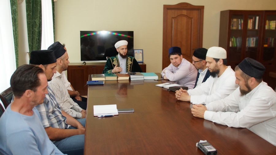 Татарстан мөфтие чит илләрдәге дини уку йортларында белем алучы шәкертләр белән очрашты
