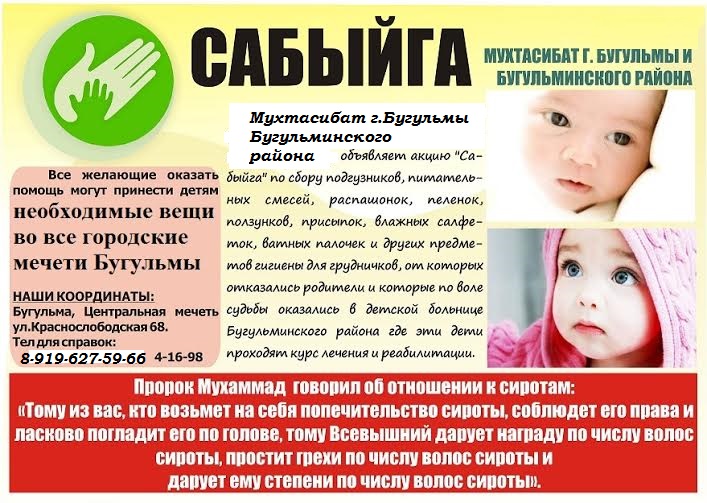 Бөгелмә мөхтәсибәте “Сабыйга” акциясендә катнашырга чакыра