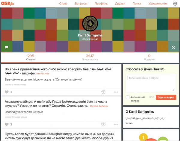Татарстан мөфтиенең аsk.fm сораулар һәм җаваплар социаль челтәрендә шәхси сәхифәсе...
