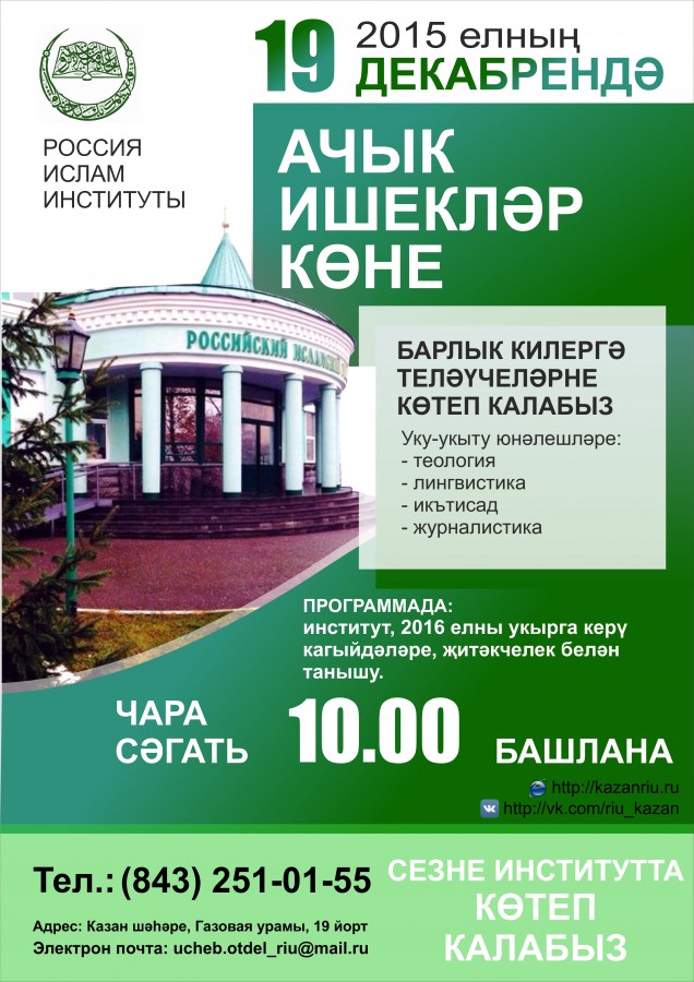 19 декабрьдә Россия ислам институты дини югары уку йортына укырга керү тәртипләре белән таныштыру...