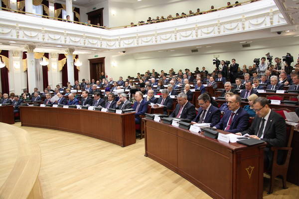“Соңгы дистә елларда безнең илдә тормыш тәртибе җитди үзгәрде, кайчандыр бердәм ил булып яшәгән кайбер дәүләтләр һәм халыклар белән мөнәсәбәтләр тамырдан үзгәрде. Миграция агымы, террорчылык һәм экстремизм үтеп керү төрле каршылыклар, җитди куркыныч тудыра. Бу күренешләр, капма-каршы фикерләр яшьләрнең төрле кыйммәтләргә карата күзаллауларында чагылыш тапмый калмый. Ни кызганыч, яшьләр даирәсендә гомуми кабул ителгән кыйммәтләрне санга сукмау күзәтелә, чит-ят карашларга ия булганнарның өстенлекле фикерләре көчләп тагыла. Патриотлык, рухилык, дуслык, тугрылык кебек төшенчәләрнең бәясе төшә, Интернет челтәрендә шикле берләшмәләр күп туплана. "Ислам дәүләт" террорчылык идеологиясе яшьләрнең психикасына тискәре йогынты ясый”, - дип башлады сүзен Рөстәм Миңнеханов.