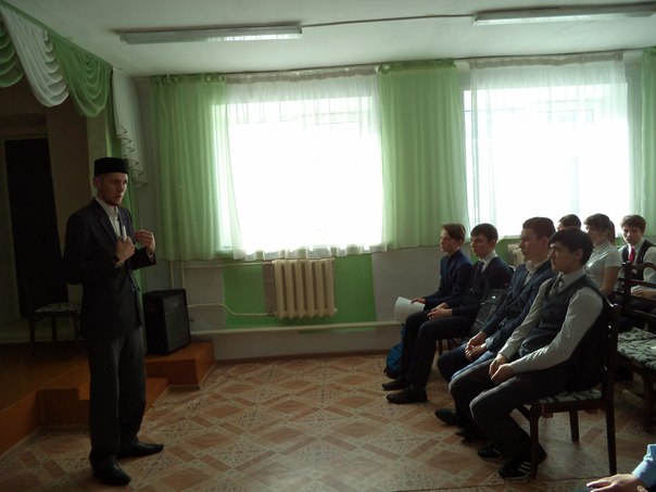 Диния нәзарәте вәкилләре укучыларга тәмәкенең һәм исерткеч эчемлекләрнең зыяны хакында лекция сөйли