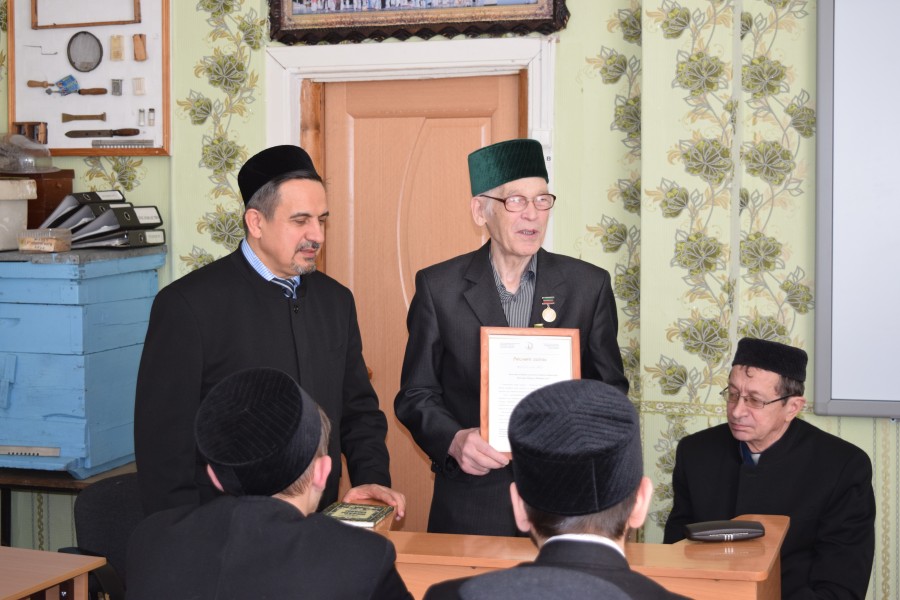 Мәдрәсә директоры Ильяс хәзрәт Җиһаншин Татарстанның атказанган фән эшлеклесе Марсель Әхмәтҗановка очрашуга килгәне өчен рәхмәтен җиткерде һәм аңа “Рәхмәт хаты”н тапшырды, саулык-сәламәтлек теләде һәм безне яңадан-яңа фәнни ачышлары белән сөендереп торуын теләде. Галим исә үз чиратында үзенең яңа басылып чыккан китапларын мәдрәсә китапханәсенә бүләк итте һәм җомга намазында катнашты.
