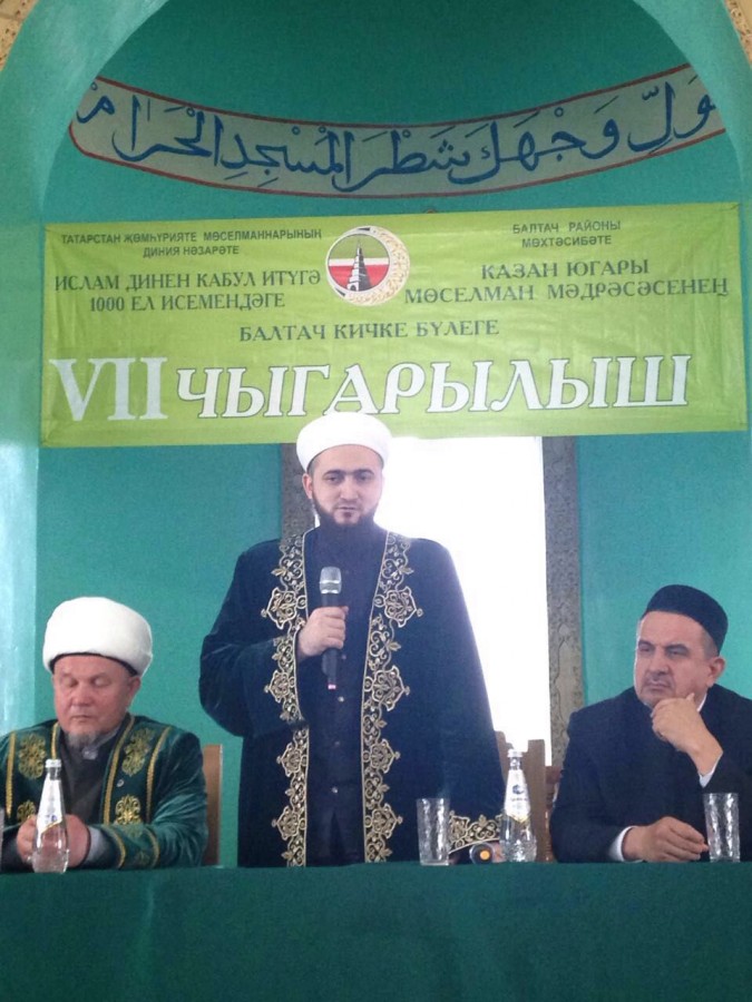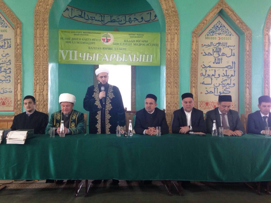 Район башлыгы белән очрашудан соң мөфти хәзрәтләре Балтач  мәдрәсәсендә гыйлем алучыларның чыгарылыш кичәсендә катнашты. Биредә ул дини гыйлем алуның зур мәртәбә булуын билгеләп узды һәм  барлыгы 43 шәкерткә дини гыйлем үзләштерүләре хакында дипломнар тапшырды.