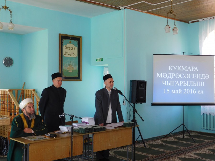 15 май көнне Кукмара мәдрәсәсендә 17 нче чыгарылышка багышланган тантаналы мәҗлес үткәрелде. Урта-махсус дини белем бирүче һөнәри уку бүлеген тәмамлаучы 25 шәкерттән тыш, быел башлангыч дини белем алып, һөнәри булмаган бүлекне тагын 43 кеше тәмамлады. Һөнәри бүлекне тәмамлаучылар “Имам-хатыйб” һәм “Ислам дине нигезләре мөгаллиме” белгечлегенә ия булуны раслаучы диплом алсалар, һөнәри булмаган бүлекне тәмамлаучыларга башлангыч дини белем алу турында шаһәдәтнамә тапшырылды.