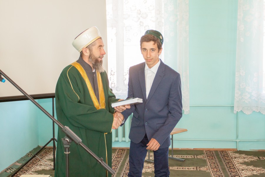 Мөгаллимнәр һәм шәкертләрнең чыгышлары килгән кунакларның вәгазьләре белән үрелеп барган тантана өйлә намазыннан соң оештырылган чәй мәҗлесе белән төгәлләнде. Шәкертләр мөгаллимнәргә ихластан олы рәхмәтләрен җиткерделәр, укутучылары исә: “Дин белеменә ия булучы кеше – ул ислам динебезнең көзгесе, башкаларга үрнәк” дигән нәсыйхәтен җиткереп, дини белем иясе исеменә тап төшермичә, алдагы тормышта да гыйлем сукмагыннан тайпылмаска, гамәл-гыйбадәт кылып, һәрдаим Аллаһ ризалыгын алырга тырышып яшәүләрен теләп үгет-нәсыйхәт кылдылар.