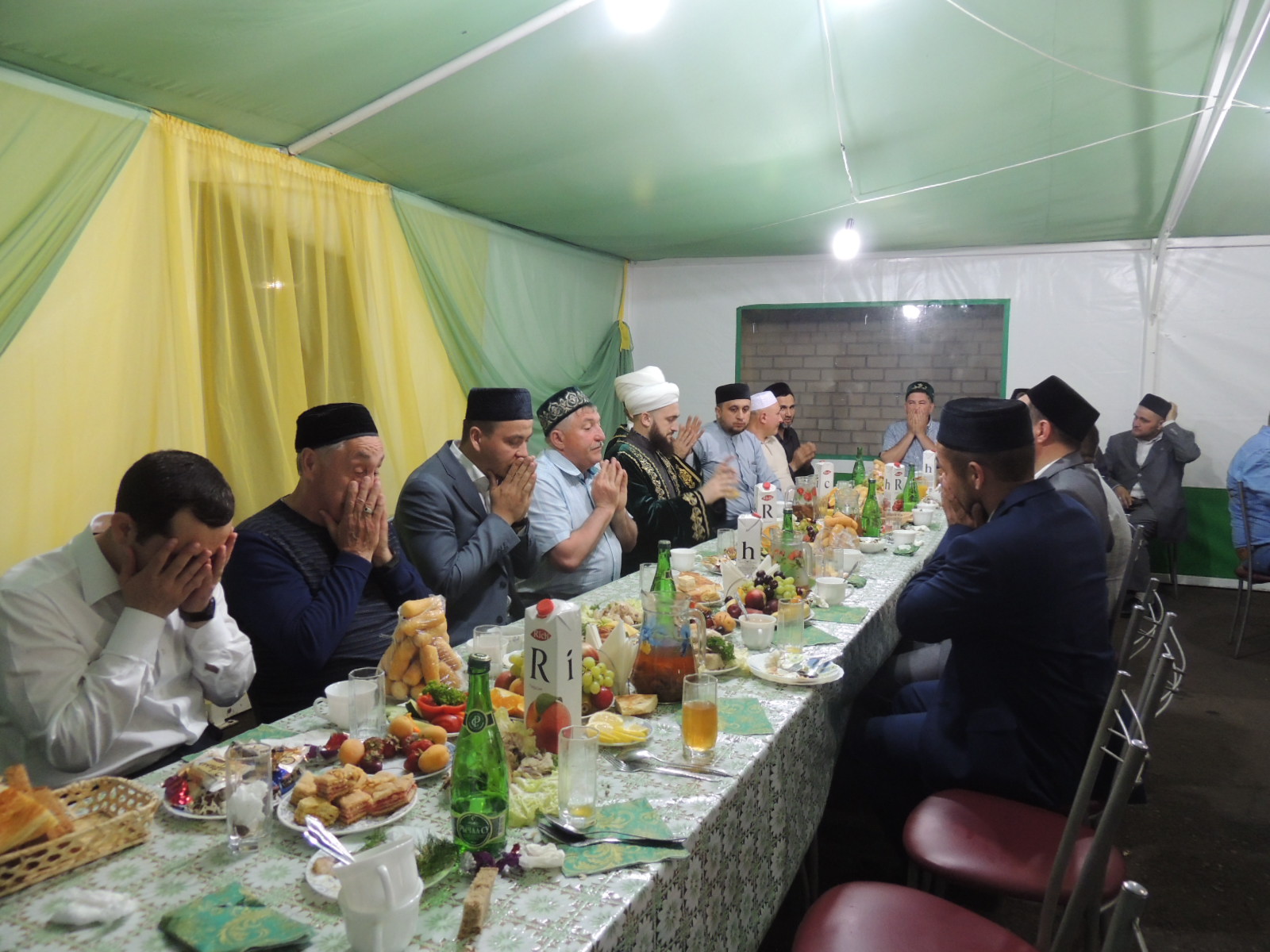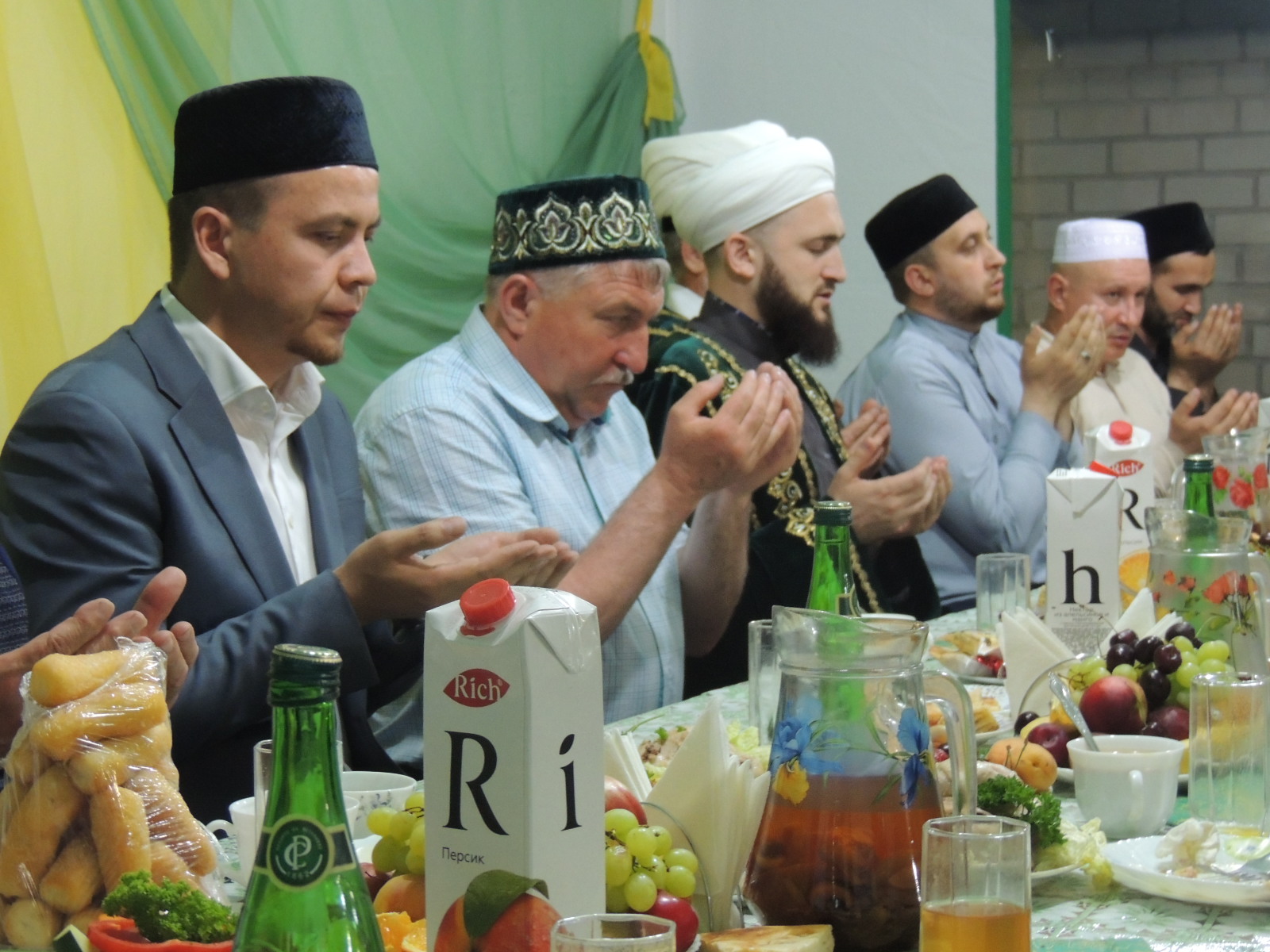 Мәҗлес барышында мөфти Лениногорск мөселманнары белән бергә авыз ачты, намаз укыды һәм халыкның күпсанлы дини сорауларына җавап бирде.