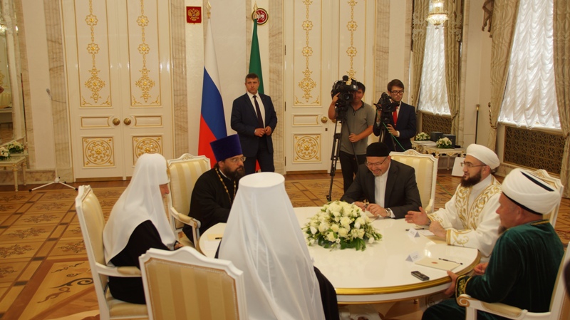 Эшлекле очрашуда Россия ислам институты ректоры Рафыйк Мөхәммәтшин, Татарстанның баш казые Җәлил хәзрәт Фазлыев, Казан һәм Татарстан митрополиты Феофан һәм Рус православие чиркәвенең динара элемтәләр буенча тышкы элемтәләр бүлеге сәркатибе, рухани Дмитрий Сафонов катнашты.