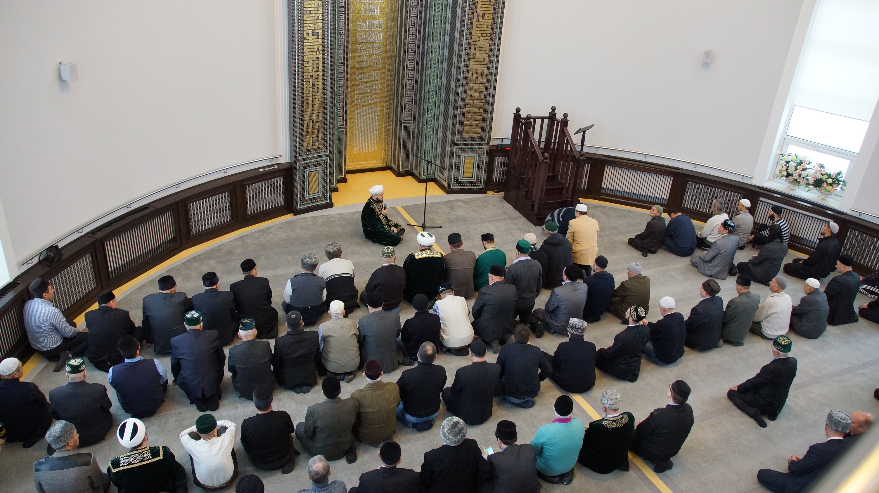 Дин әһелләре, мәхәллә халкы мәчеттә мөфти Камил хәзрәт Сәмигуллин җитәкчелегендә өйлә намазын укыдылар. Аннары мәчет ишегалдына корылган шатырда мөфти вәгазен һәм башка хәзрәтләрнең чыгышларын тыңладылар.
