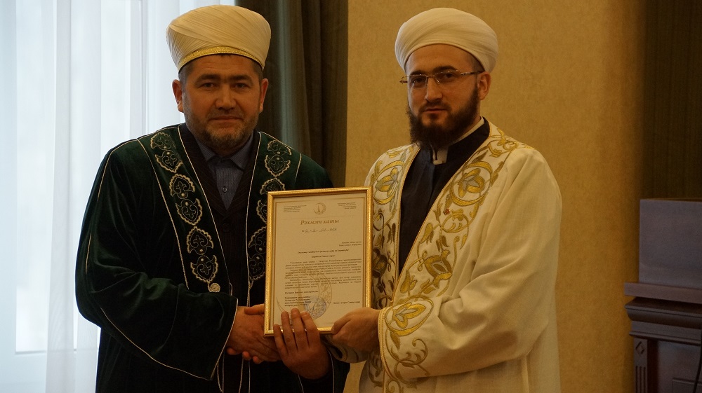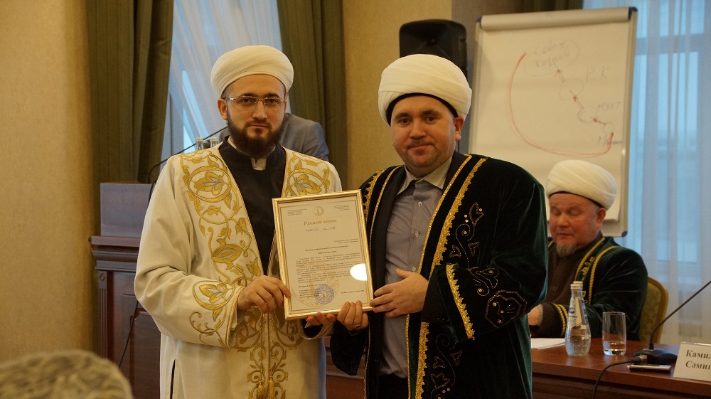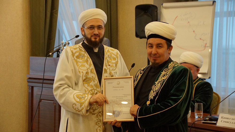 Менә кайберәүләр мәчетләрдә эшләүне бик җиңел эшкә санап киләләрдә 2-3 айдан юкка чыгалар. Чөнки биш вакыт намазны үзеңә генә түгел, җәмәгатькә дә өйрәтергә кирәк. Моның өчен әле аларны мәчеткә китерәм дип, күпме чара уздырасың, укытасың, нәсихәтлисең һәм башкаларны эшлисең... Моны бик күп дини эшләрнең башында торган хәзрәтләр генә аңлый.  Соңгы елларны грантлар белән  булышып ярдәм итәргә тырышабыз, республика җитәкчеләре ярдәмендә әллә ничә миллион сум торган дини  корылмалар төзелә. Коръән бастырабыз, китаплар нәшер итәбез, 10 мең кешелек ифтар оештырдык, бер-бер артлы бик матур дини мәҗлесләр үткәрелеп тора... Чит илләрдән кунаклар чакырабыз, аларга республикадагы мөселманнар тормышы хакында сөйлибез. Әлбәттә, рәхәтләнеп сөйли алмас идек, әлбәттә бу эшләрнең берсе дә барып чыкмас иде... Әгәр дә без төрле тараф кешеләре булсак. Әгәр дә без үзара бердәмлекне саклый алмасак, бернинди алга китеш тә булмас иде. Димәк, динне тарату белән бергә, тынычлыкны саклау өчен дә бүгенге көндә хәзрәтләр зур  тырышлык куялар. Алга таба да бер-беребезгә ярдәм итеп, үзара дус булып, бердәм булып дини эшләрне алып барырга язсын иде", - дип әйтте Камил хәзрәт һәм сүзләрен күәтләп, дин әһелләренә рәхмәт хатлары тапшырды.