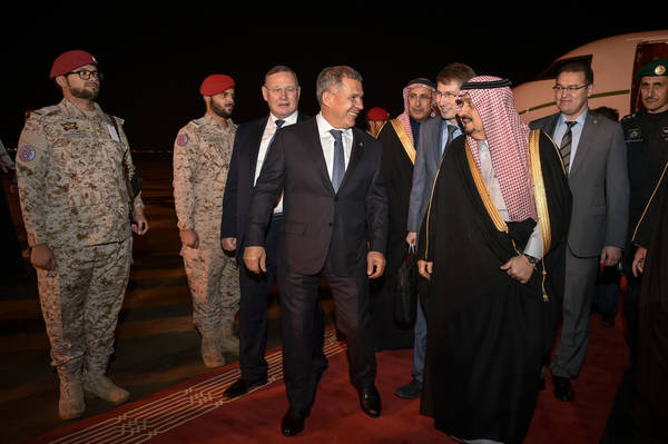 Бүген Татарстан Республикасы Президенты Рөстәм Миңнеханов рәсми визит белән Согуд Гарәбстанына килде. Эр-Рияд халыкара аэропортында аны Россия Федерациясенең Согуд Гарәбстанындагы Гадәттән тыш һәм Тулы вәкаләтле Илчесе һәм Россия Федерациясенең Ислам хезмәттәшлеге оешмасы каршындагы Даими вәкиле Олег Озеров, Эр-Рияд провинциясе Губернаторы принц Фәйсал бен Бандар, Согуд Гарәбстанынының Сәүдә һәм инвестицияләр министры, Россия-Согуд Гарәбстаны хөкүмәтара комиссиясе рәистәше Мәҗед Әль-Кассаби каршы алды.