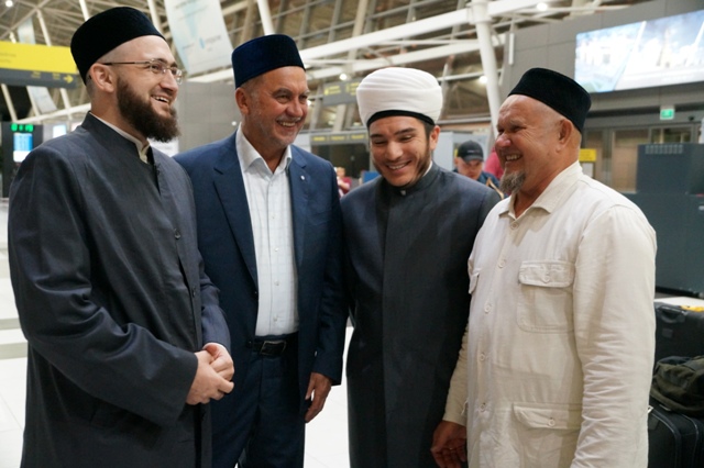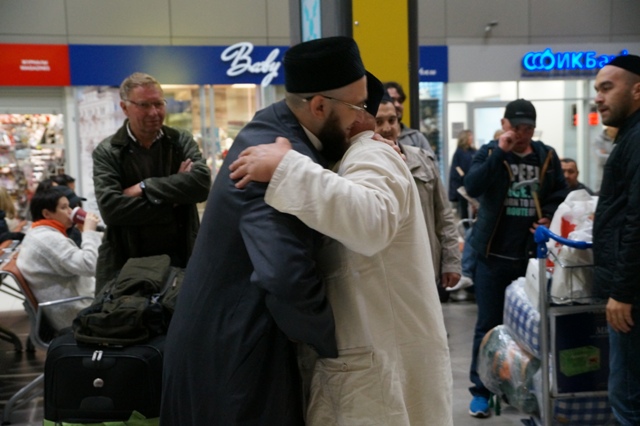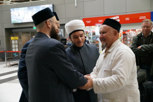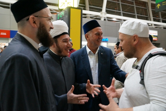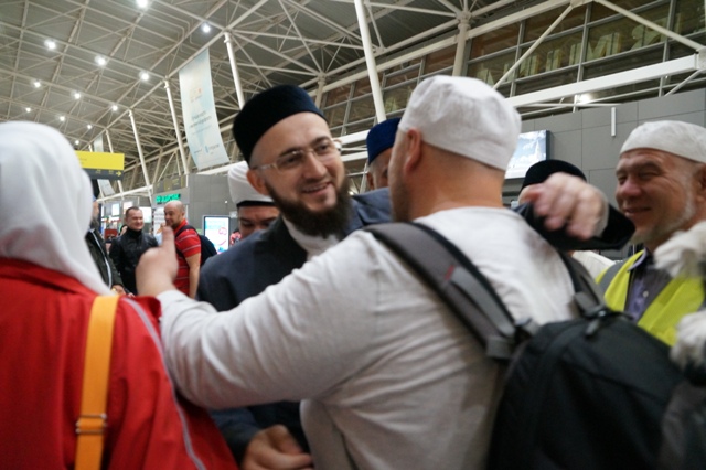 Татарстан мөфтие Камил хәзрәт Сәмигуллин Татарстан хаҗиларының беренче төркемен каршы алды ("Казан" аэропортыннан фоторепортаж)