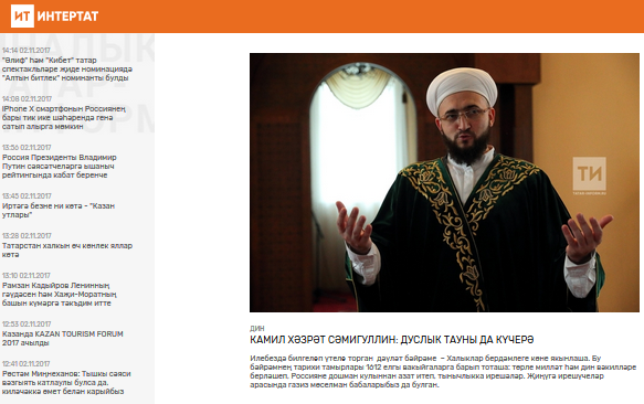 Бүген “Интертат.ру” сайтында Татарстан мөфтиенең чираттагы мәкаләсе дөнья күрде. Биредә Камил хәзрәт Сәмигуллин дәүләт тарафыннан билгеләп үтелә торган бәйрәм – Халыклар бердәмлеге көне уңаеннан мөрәҗәгать итә. Үз мәкаләсендә ул әлеге бәйрәмнең барлыкка килү тарихына, аның әһәмиятенә, халыклар дуслык-татулыгының илебездә, бар дөньяда мөһим күренеш булуына туктала. Камил хәзрәт үз мәкаләсендә пәйгамбәребез Мөхәммәд Мостафа салләллаһу галәйһи вә сәлләм хәдисләрен, хикмәтле гыйбарәләр, мәкальләр китерә.