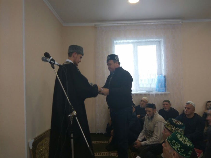 Нияз хәзрәт Сабиров, әлеге куанычлы вакыйга белән тәбрикләп, Татарстан мөфтие исеменнән сәламләү сүзләрен җиткерде. Ул мәчеттә гыйбадәт кылу һәм гыйлем алу фазыйләтләре турында сөйләде. Яңа мәчеткә дини китаплар бүләк итте.