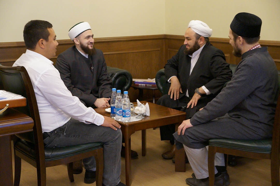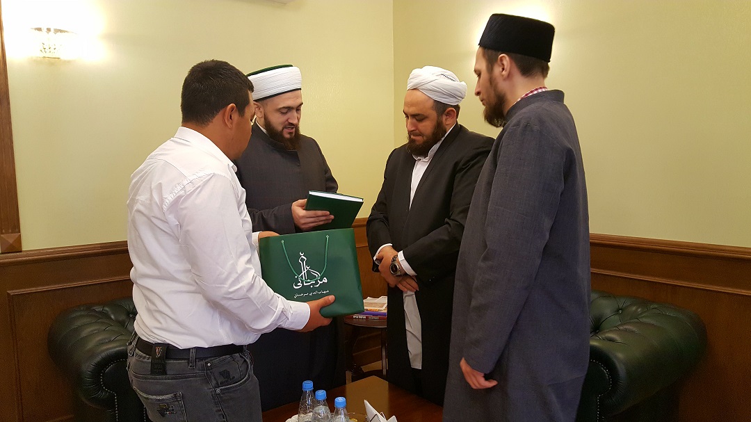 Камил хәзрәт Сәмигуллин, үз чиратында, Татарстан мөселманнары Диния нәзарәтенең эшчәнлеге, проектлары турында сөйләде һәм атаклы галимебез Шиһабетдин Мәрҗанинең китапларын бүләк итте.