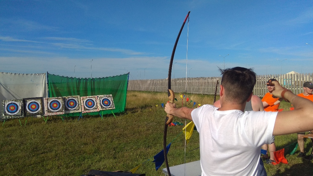 Егетләр исә үзләренең булдыклыкларын ук атуда сынадылар. Элгәре мастер-класста катнашсалар, соңыннан уктан ату турнирында ярыштылар. Уктан ату Пәйгамбәребез Мөхәммәд салләллаһу галәйһи вә сәлләм сөннәте. Пәйгамбәребез Мөхәммәд салләллаһу галәйһи вә сәлләм хәдисләренә мөрәҗәгать итсәк, аларның берсендә ул балаларны уктан атарга, йөзәргә һәм атта йөрергә өйрәтергә кушкан. Шул сәбәпле мөселман егетләре өчен бу спорт төре бер дә чит түгел, киресенчә мөһим спорт төрләренең берсе. Иң очкын күзлеләрдән беренче урынны яулаган Туганаев Рамазан, икенче урынны Хафизов Рөстәм, өченче булып Бикмөхәммәтов Салих табылды. Заманчарак ату коралы булган арбалет ярышында беренче урын Гыйрфанетдинов Азатка, икенче урын Исмәгыйлев Альмирга, өченче урын Газыймов Русланга бирелде.
