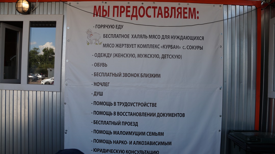 "Мохтаҗларга ярдәм күрсәтү" Комплексында хәерче һәм йортсыз-җирсез калган кешеләр өчен бушлай кайнар аш белән туклану һәм кием-салып белән тәэмин итү, шулай ук кундыру һәм юыну шартлары тудырылган. Моннан тыш, мохтаҗларга телефон элемтәсеннән файдалану, эшкә урнаштыру, югалган документларны торгызуда ярдәм итү, юридик консультацияләр, медицина һ.б. хезмәтләр күрсәтелә. Ярдәм аз керемле гаиләләргә, наркомания һәм алкоголизм чирләреннән интегүчеләргә дә күрсәтелә.