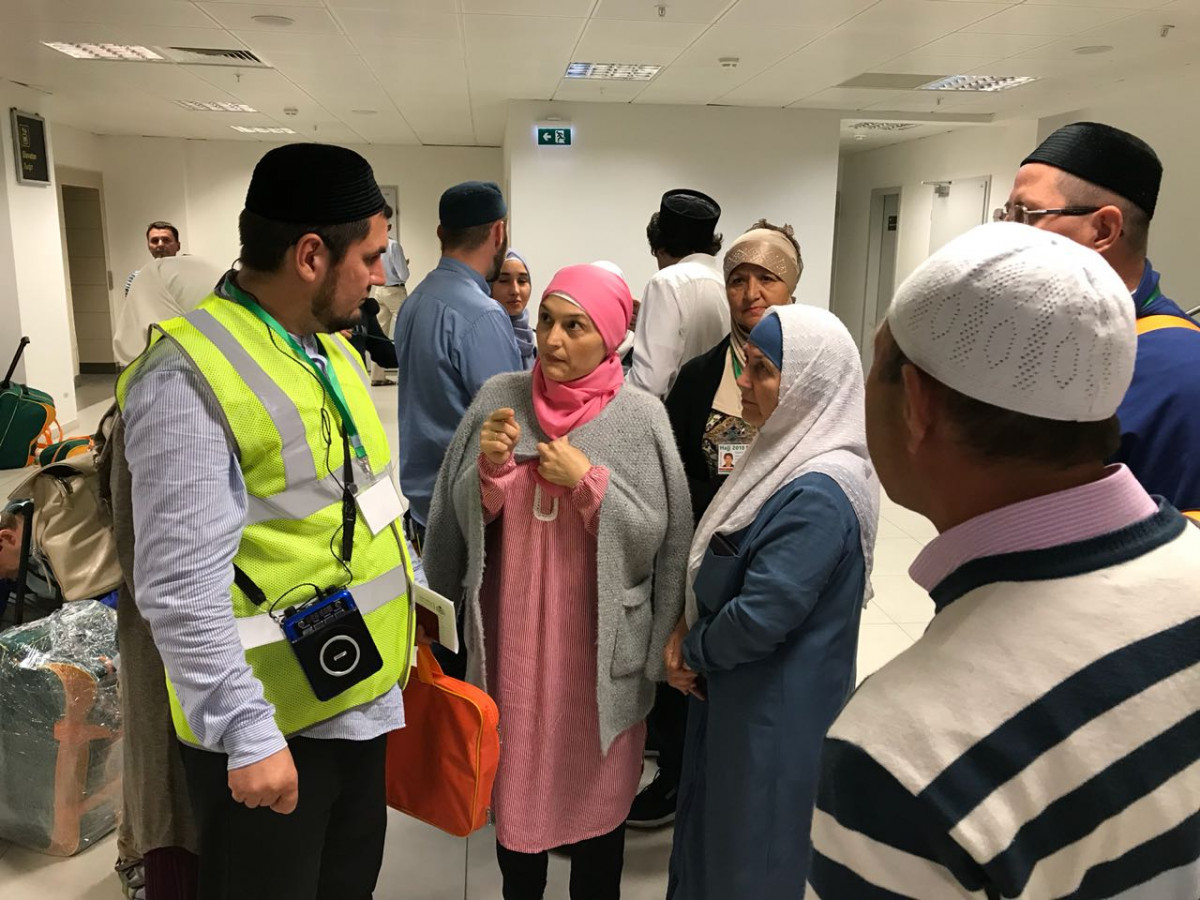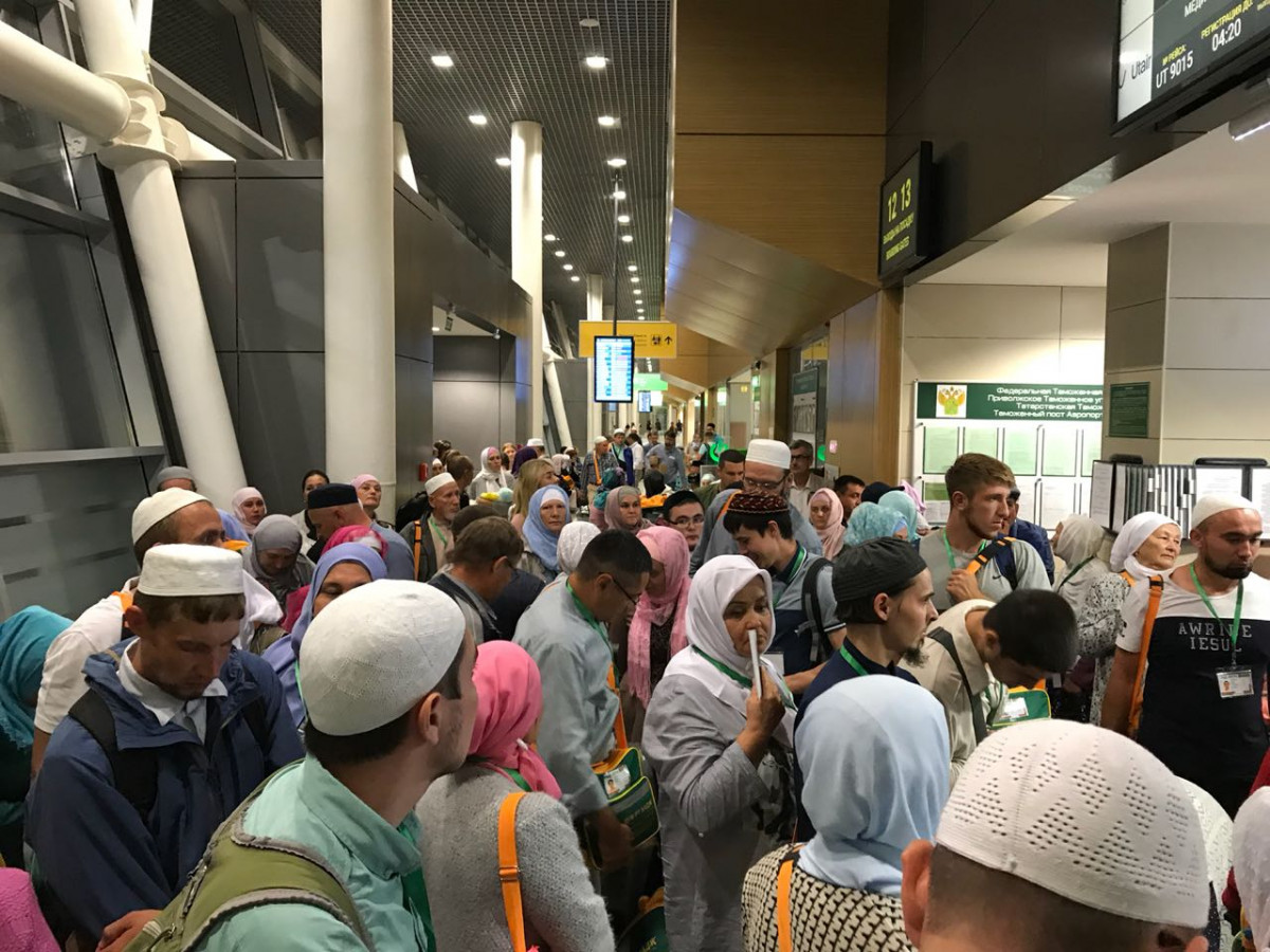 Хаҗилар утырган чираттагы очкыч Казан-Мәдинә маршруты буенча 11 август көнне юл алды. Очкычта 49 кешелек 5 төркем. Булачак хаҗилар “Казан” халыкара аэропортына  төнге бердә үк җыелдылар. Шунда ук иртәнге намазны укыдылар. Аллаһыга шөкер, биредә барлык шартлар да тудырылган. Өченче катта иркен тәһарәтханә һәм гыйбадәт бүлмәсе.