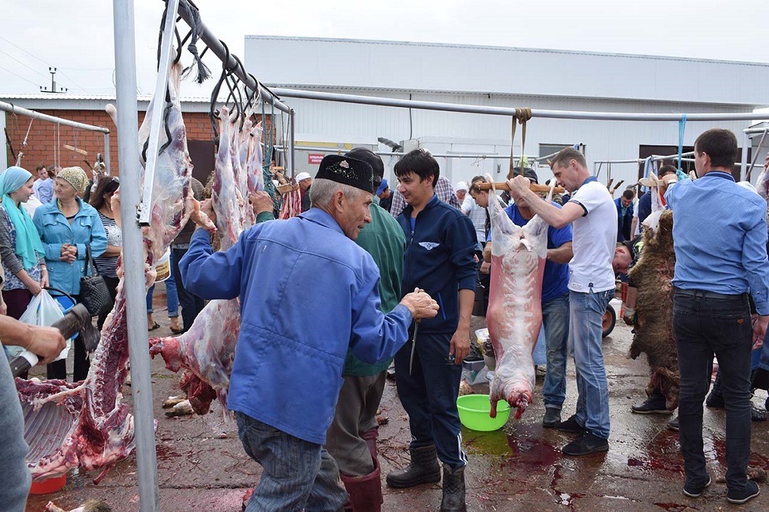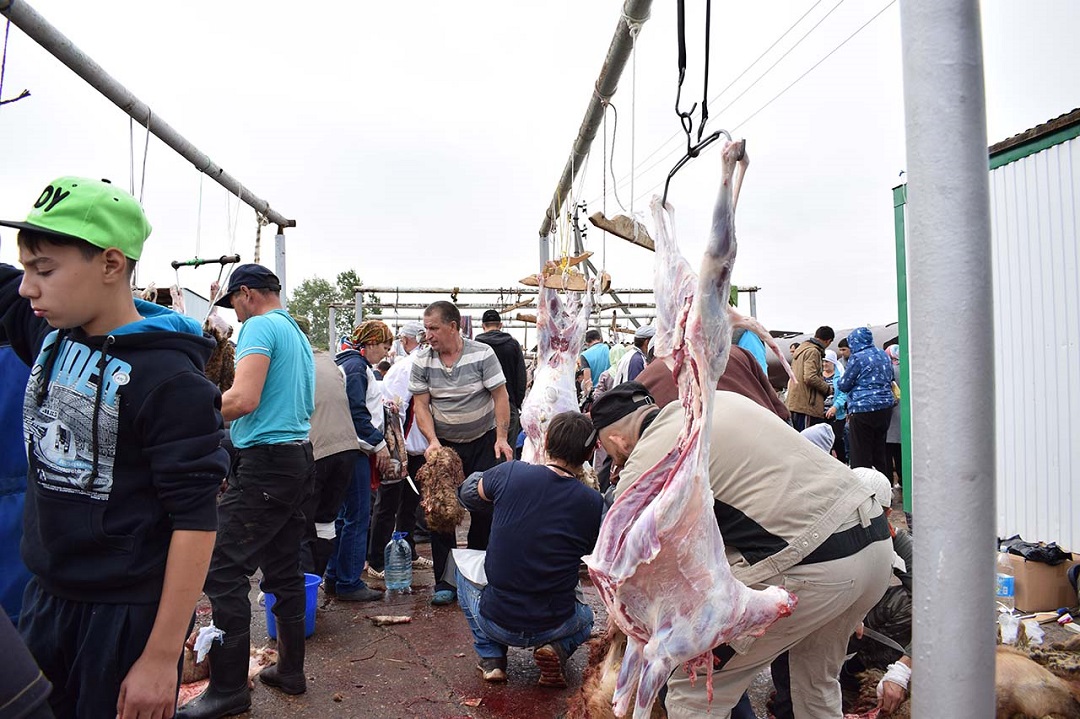 Гает намазына кадәр Үзәкләштерелгән корбан чалу мәйданчыгына ике меңнән артык сарык кертелде. Гает намазы тәмамлану белән, иртәнге сәгать алтыдан башлап, мәйданчыкта корбан чалу башланды. Бу эш өч көн дәвамында барачак. Мохтаҗлар өчен корбан ите җыю оештырылган. Шулай ук “Ихсан” фонды тарафыннан “Курбан Байрам в каждый дом” дип аталган акция уздырыла. Аның барышында һәр теләгән кеше корбаннарын “Ихсан” фонды ярдәмендә чала хәм мохтаҗларга тарата ала. Корбан чалучылар су, элеп тунау урыннары белән тәэмин ителгән, ветеринария контроле, ГИБДД, полиция посты эшли, мал калдыклары җыеп барыла, намаз бүлмәсе җиһазланган. Мал чалу һәм тунау хезмәте күрсәтелә.