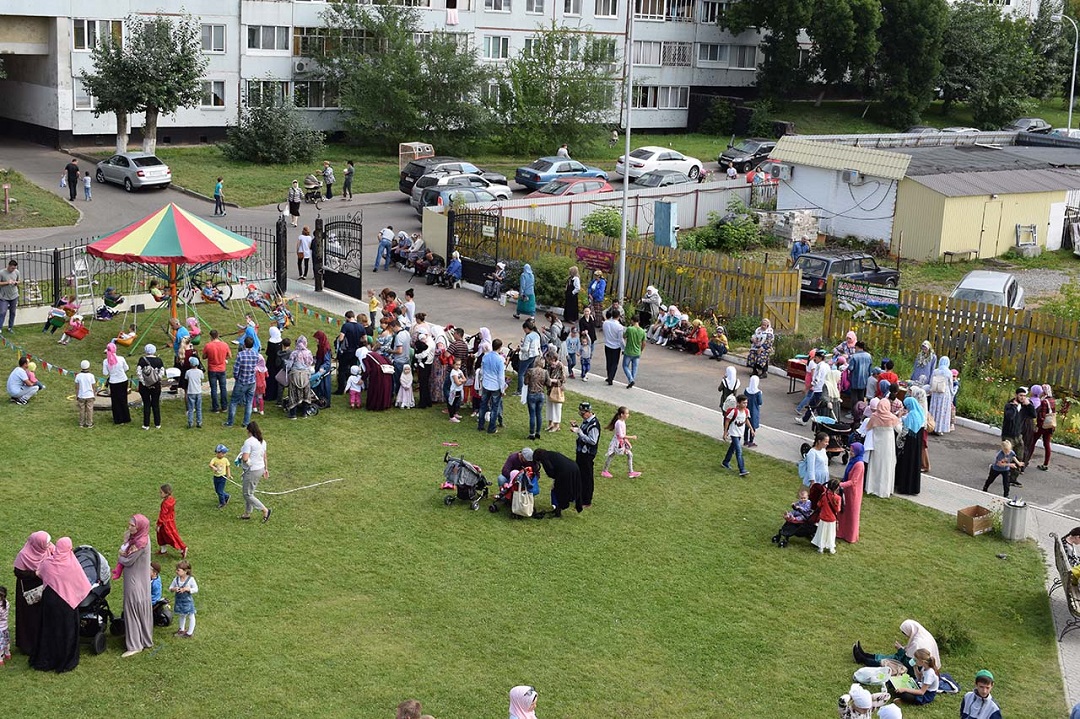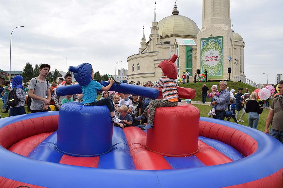 Рәсемнәрдә: “Нур-Ихлас”, “Утыз Имәни” һәм “Рамазан” мәчетләрендә бәйрәм вәгазен тыңлау, мөхтәсибәттә балалар өчен уздырылган бәйрәмнән һәм корбан чалу мәйданчыгыннан күренешләр.