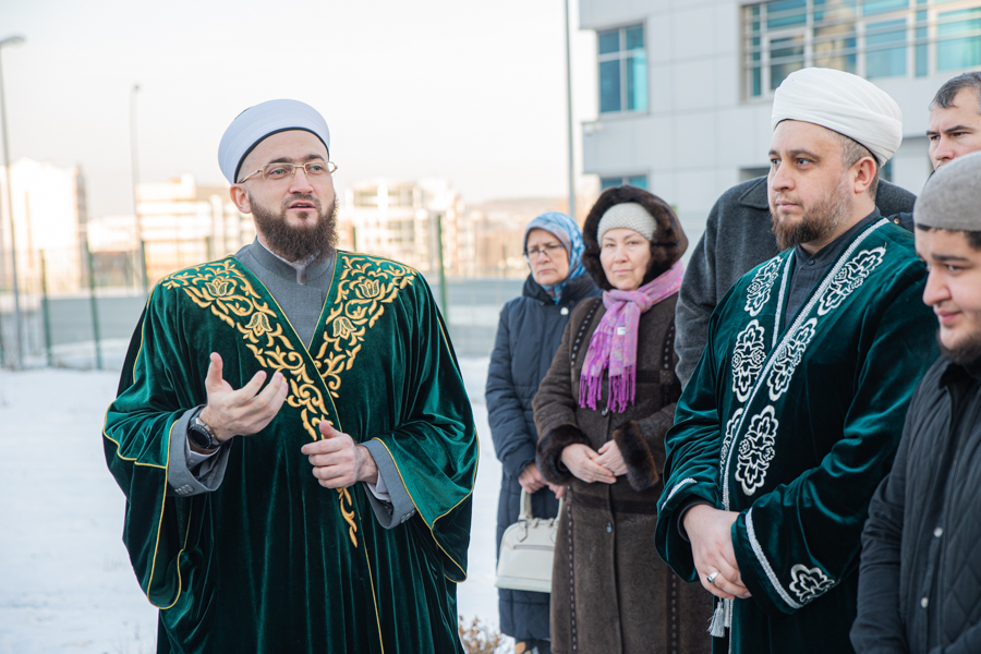 – “Әлү Гыймран” (Гыймран гаиләсе) сүрәсенең 31-32-нче аятьләрендә Аллаһы Тәгалә безгә нәрсәләр әйтә? “(Рәсүлем!) Әйт: “Әгәр сез Аллаһны сөясез икән, миңа иярегез, шулвакыт Аллаһ та сезне сөячәк һәм гөнаһларыгызны гафу итәчәк. Аллаһ – (гөнаһларны күпләп) Гафу итүче, Рәхимле”. Әгәр сезнең гамәлләрегездә сөннәт булса, димәк, сез Пәйгамбәребезне яратасыз. Әгәр дә сезнең тормышыгызда сөннәт рәвеше булмаса, яратмыйсыз дигән сүз. Ин шә Аллаһ, шушы аятьләр белән төзелешне башлыйбыз. Бу үзәктә дә безнең динебез белән яшәүчеләр, галимнәр чыгар дигән өметтә калабыз, - дип әйтте мөфти хәзрәт һәм җәмәгать белән дога кылды.