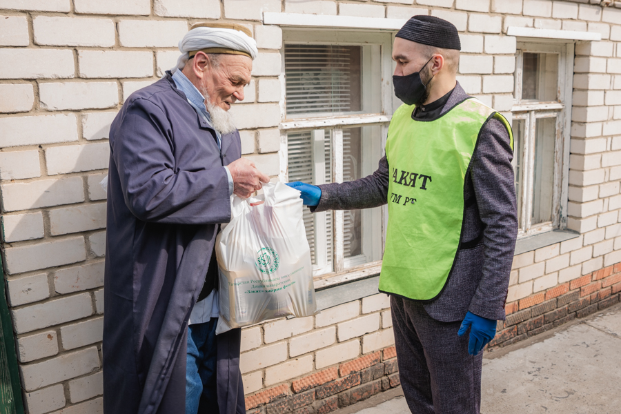 Пандемия аркасында куркыныч астында калган һәм үзе-үзеңне җәмгыятьтән читләштерү чаралары кертелү сәбәпле өйдән чыгып китә алмаган Казанда яшәүче өлкән яшьтәге имамнарга шушы көннәрдә азык-төлекләтә ярдәм күрсәтелде. Диния Нәзарәтенең "Зәкят" Хәйрия фонды  30 хәзрәтнең өенә азык-төлек җыелмаларын бушлай китереп тапшырган. Күчтәнәчләр җыелмасына он, ярма, май, консервалар, шикәр, макарон, хөрмә җимешләре, чәй һ.б. кертелгән.