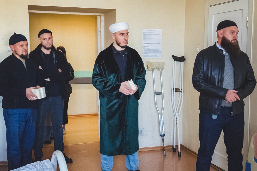 РФ Мөселман эшкуарлары ассоциациясе вәкилләре Республика клиник хастаханәсе каршындагы госпитальгә махсус хәрби операциядә яраланган сугышчылар янына барды һәм аларга 60 хәләл азык-төлек җыелмасы тапшырды.