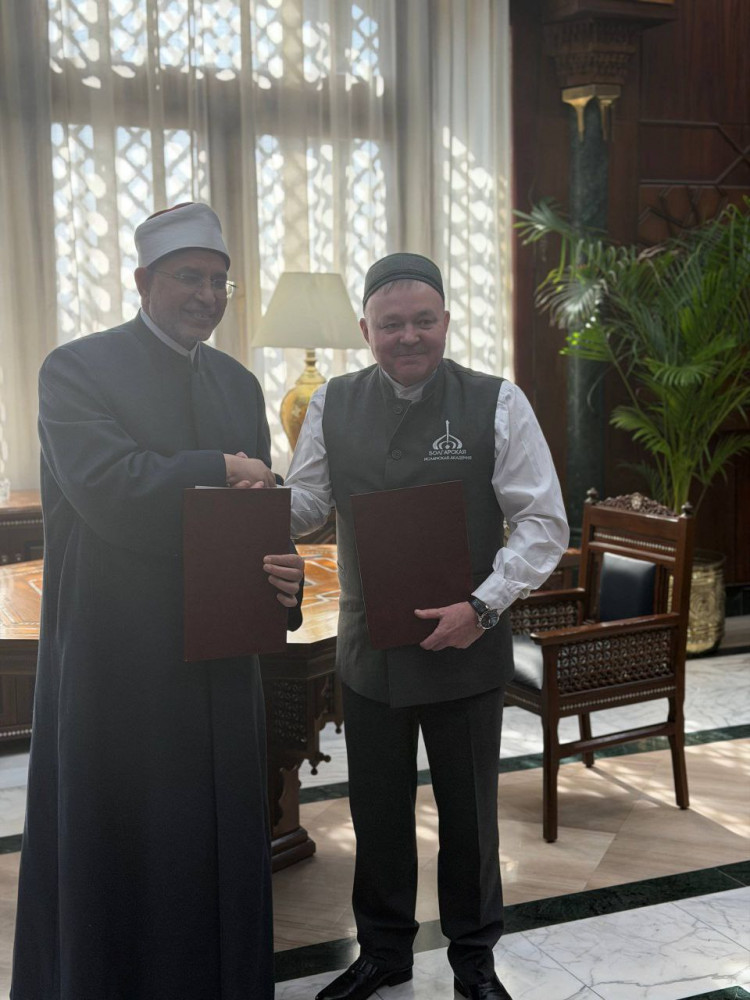 Каһирә шәһәрендә Ислам эшләре буенча Югары шураның 36 нчы Генераль халыкара конференциясе дәвам итә. Җыен кысаларында БИА һәм "Әл-Әзһәр"университеты арасындагы хезмәттәшлекнең Юл картасын имзаладылар. Документка әлеге уку йортлары ректорлары – Сәләм Дауд һәм Фәрхәт Хөснетдинов кул куйды. Тантанада Татарстан Рәисе ярдәмчесе, “Россия – Ислам дөньясы” Стратегик караш төркеме рәисе урынбасары Марат Гатин, Россиянең Баш мөфтие һәм Үзәк Россия мөселманнары Диния нәзарәте рәисе, БИАны гамәл куючыларның берсе Тәлгать хәзрәт Таҗетдин, Татарстан Мөфтие, ТР мөселманнары Диния нәзарәте рәисе, БИАны гамәл куючыларның берсе Камил хәзрәт Сәмигуллин, БИА мөгаллиме Саиф әл-Асри катнашты.