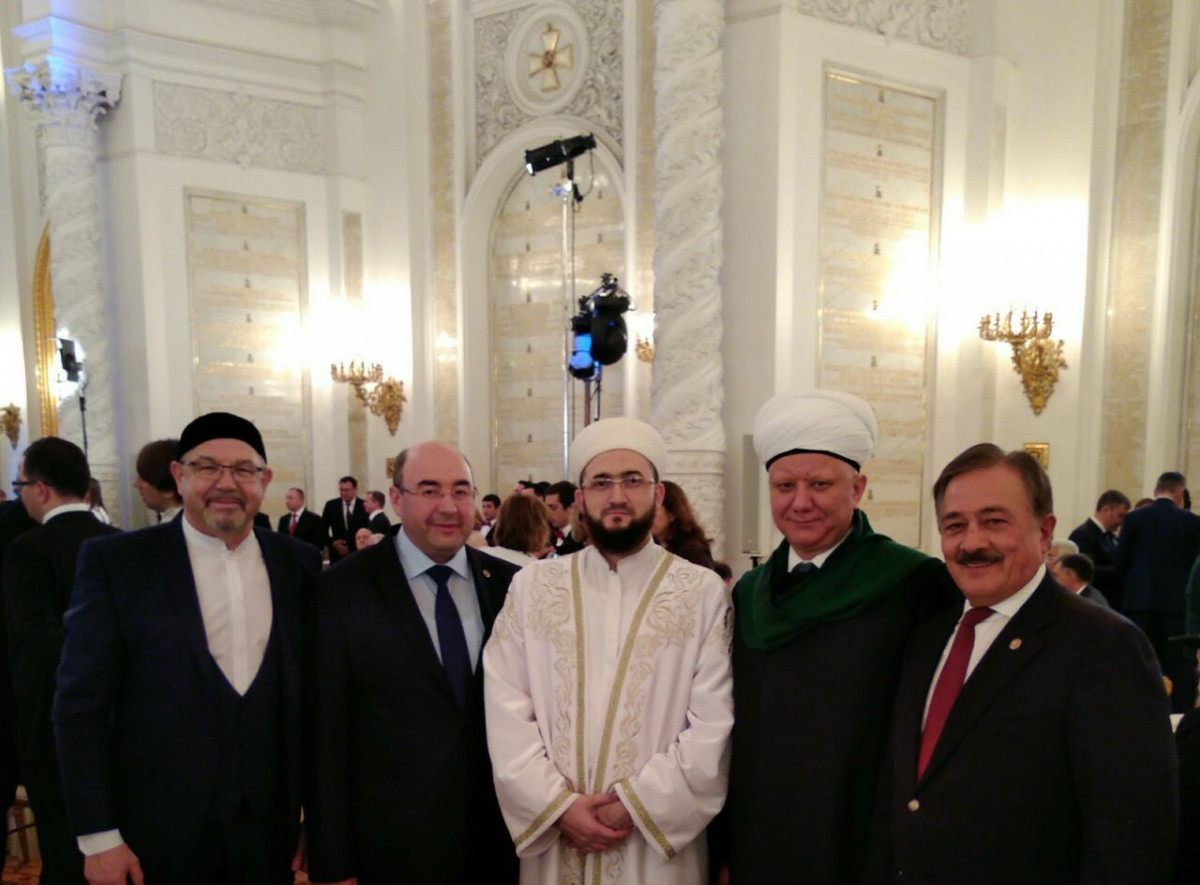 Сегодня в Москве в Большом Кремлёвском дворце прошел торжественный приём Президента России Владимира Владимировича Путина по случаю Дня народного единства. Среди приглашенных был и муфтий Татарстана Камиль хазрат Самигуллин, а также его заместитель по образованию, ректор Болгарской исламской академии и Российского исламского института Рафик Мухаметшин. Кроме того, на приеме присутствовали Президент Болгарской исламской академии Камиль Исхаков и директор института филологии и межкультурной коммуникации КФУ Радиф Замалетдинов.