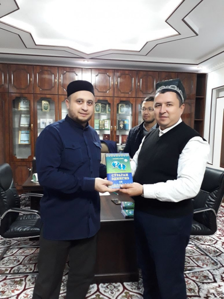 Кроме того, религиозные деятели побывали в комплексе известного ученого Исмагила Аль Бухари (810 – 870 гг), где он был похоронен. Также гости посетили могилы таких видных ученых, как Абу Мансур Аль – Матуриди, Хусам ибн Габбас. Имамы мухтасибатов республики Татарстан принял у себя муфтий Узбекистана, главный имам города Самарканд Зайнутдин хаджи Ишанкулов. Главный имам преподнес гостям подарок – свою книгу.