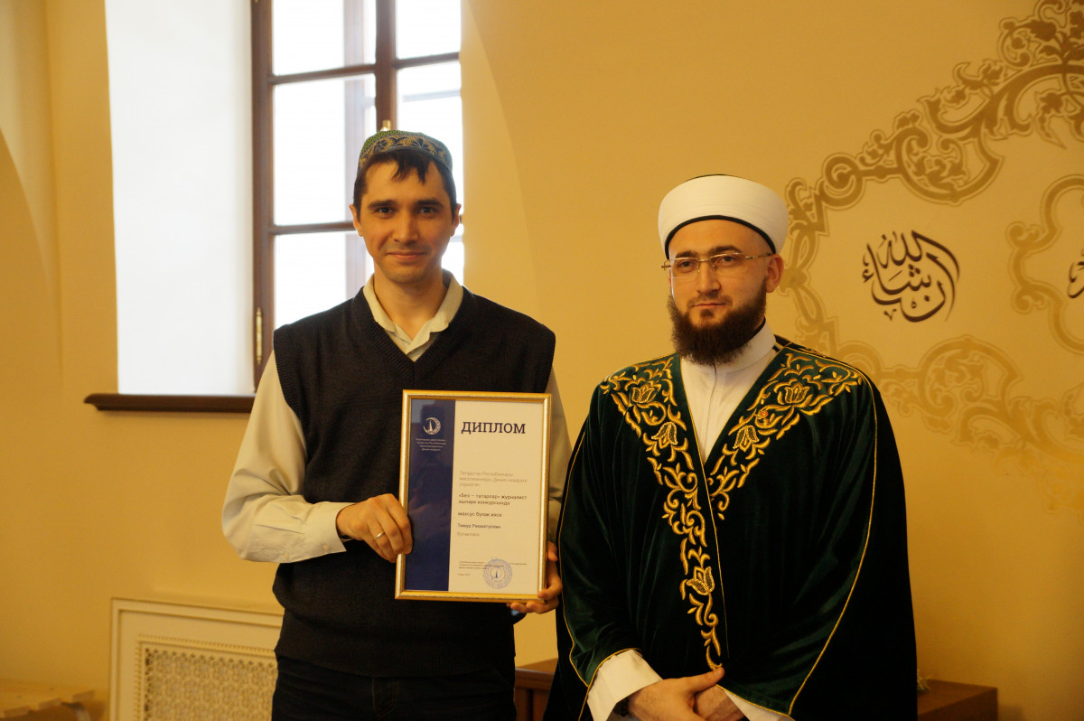 Сегодня, 16 февраля, в Галеевской мечети Казани прошла церемония награждения победителей конкурса журналистских работ «Без – татарлар!», объявленного Духовным управлением мусульман РТ с целью привлечения внимания СМИ к проблемам сохранения, развития и изучения татарского языка в Республике Татарстан, а также возрождения татарского духовного наследия. Авторам лучших работ муфтий Татарстана Камиль хазрат Самигуллин лично вручил ценные призы – денежные премии. В своей приветственной речи муфтий подчеркнул важность возрождения национального духовного наследия, сохранения и изучения родного языка и роли средств массовой информации в популяризации этих ценностей. Также Камиль хазрат выразил журналистам благодарность за ответственное и добросовестное исполнение своего профессионального долга при освещении языкового вопроса: за привлечение внимания широкой общественности и в частности родителей к проблеме изучения и использования государственных языков Республики Татарстан и донесение информации до публики в объективной, понятной и доступной форме.