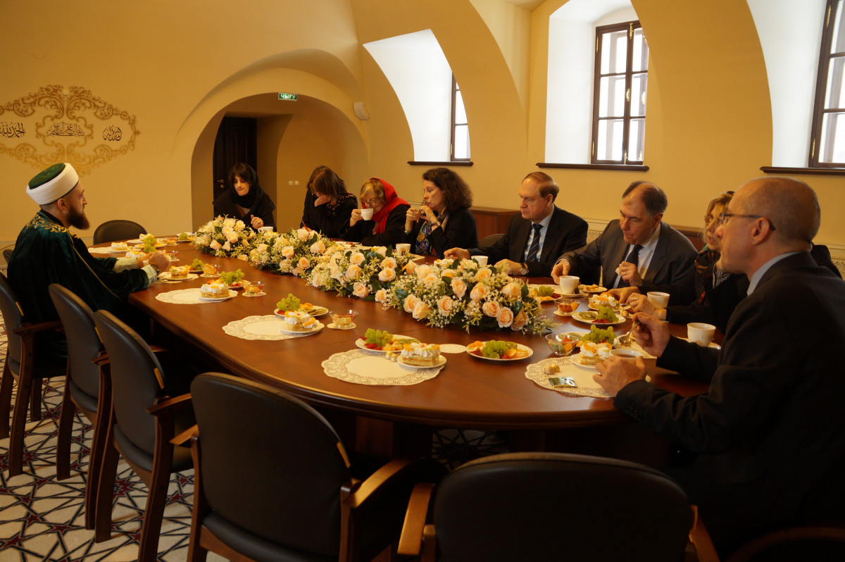 Сегодня Камиль хазрат Самигуллин в резиденции ДУМ РТ принял посла Франции в России Сильвию Берманн, которая с 17 по 19 февраля находится в Казани с рабочей поездкой. В рамках поездки она посетила Казанский Кремль, мечеть Кул-Шариф и Благовещенский Собором, передвижную выставку «Коллажи Жака Превера» в Центре «Эрмитаж-Казань», Иннополис, а теперь - и Духовное управление мусульман Республики Татарстан. Госпожу Берманн наиболее всего интересовал опыт республики по выстраиванию гармоничных межконфессиональных отношений, а также деятельность муфтията по формированию сотрудничества с православным и иудейским духовенствами. Камиль хазрат рассказал об активной профилактической и пропагандистской работе ДУМ РТ в этой сфере в мусульманской молодежной среде. Кроме того, он познакомил посла с системой религиозного образования в Татарстане, об открытии Болгарской исламской академии, о деятельности муфтията по возрождению отечественного богословского наследия и школы куръан-хафизов у татар. Он также пригласил госпожу Берманн принять участие в конференции Международной научно-практической конференции, посвященную 200-летию выдающегося богослова, татарского историка Шигабутдина Марджани “Религиозно-богословское наследие мусульман России: история и современность”, которая сегодня открывается в Казани.