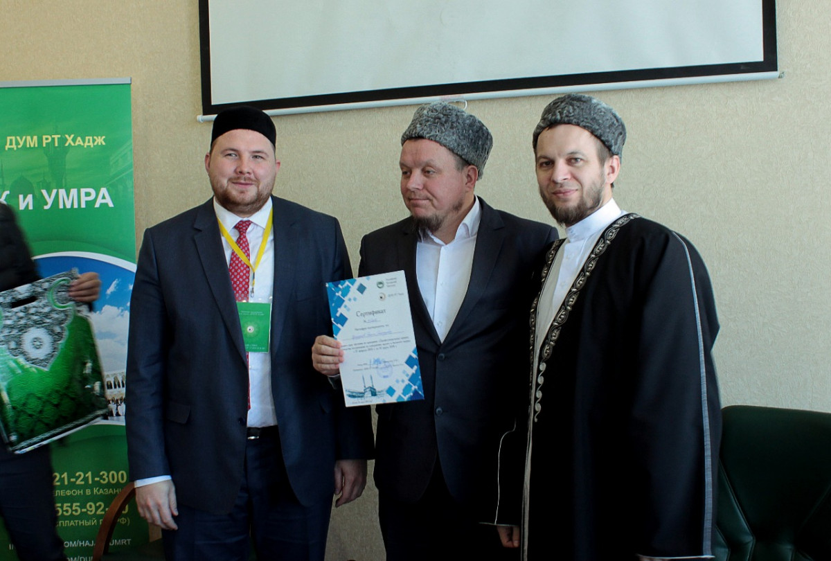 Завершился круглый стол торжественным вручением имамам сертификатов об окончании курсов повышения кваликации руководителей групп паломников. Трехдневные обучающие курсы «Профессиональные навыки руководителей паломнических групп по совершению большого и малого хаджа» начались 27 февраля в центре изучения Корана "Рашида". В рамках занятий имамы изучили исламское законодательство в части хаджа и умры, методы разрешения конфликтных ситуаций и правила общения с паломниками, достоинства исполнения хаджа и умры, а также прошли задания на развитие организаторских навыков. Всего обучение прошли 32 татарстанских имама.