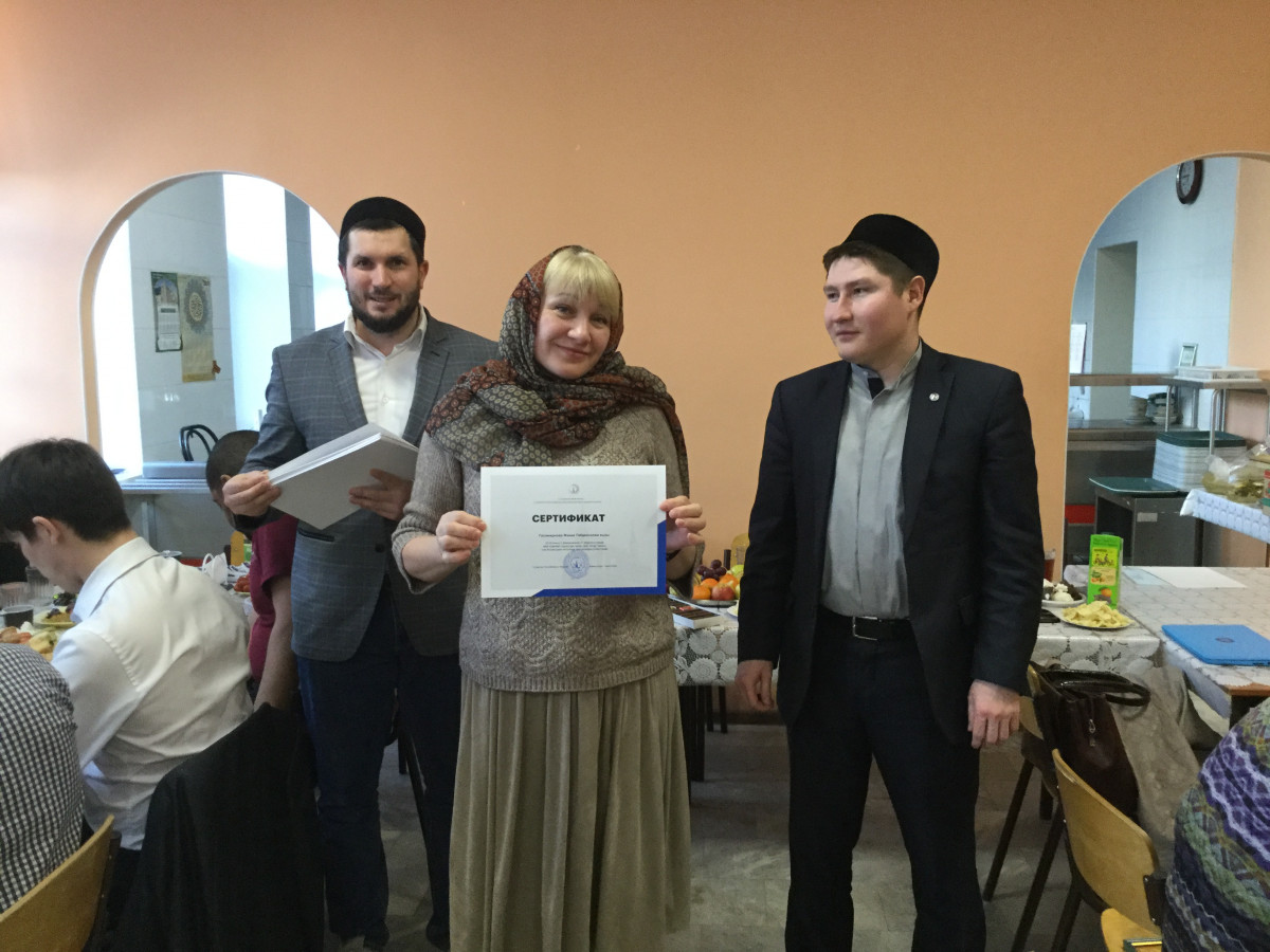 Сегодня всем слушателям курса выдали сертификаты в соответствии с освоенным объемом знаний. Курсы при казанской мечети "Энилэр" проходили в здании Российского исламского института, здесь же состоялась церемония их закрытия. В числе слушателей был 30-летний Идрис Насри из Алжира. Аспирант одного из российских вузов ныне проживает в Казани и считает своим долгом знать татарский язык, поскольку женат на татарке и воспитывает ребенка в Республике Татарстан. По окончанию курсов он стал полностью понимать татарскую речь и произносить простейшие фразы.