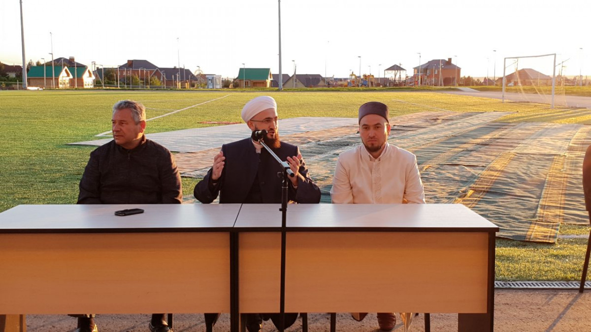 Далее визит главы мусульман Татарстана в Высокогорский район продолжился общением с местными мусульманами. Встреча с ним оказалась настолько востребованной, что организаторы провели ее на Центральном стадионе - сюда пришли представители молодежи, пожилые, руководители района, имамы... В режиме неформального общения высокогорцы получили возможность задать все интересующие вопросы и получить исчерпывающие ответы "из первых уст". Муфтий в свою очередь рассказал проповедь о достоинствах Священного месяца Рамазан, об особенностях соблюдения поста и совершения богослужений, необходимости благодеяний, воспитывания собственного нафса и воздержания от дурных поступков. Общение завершилось коллективным намазом на футбольном поле стадиона.