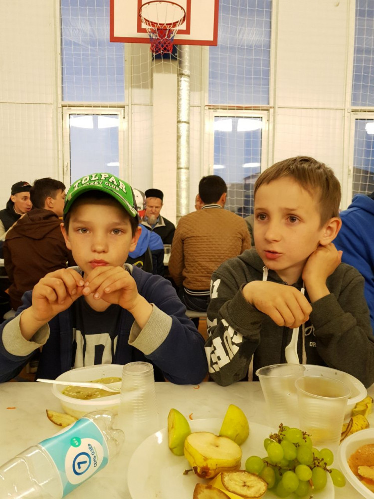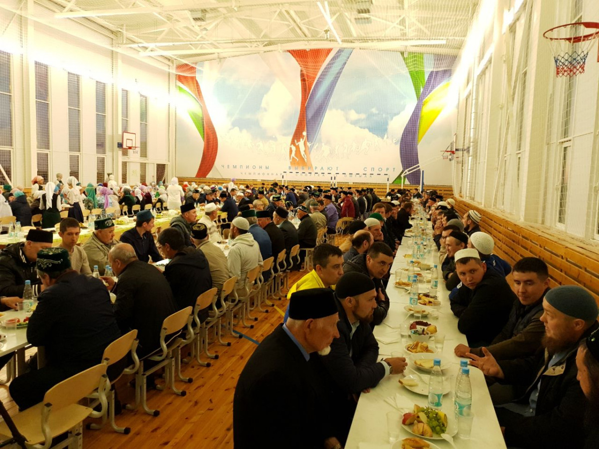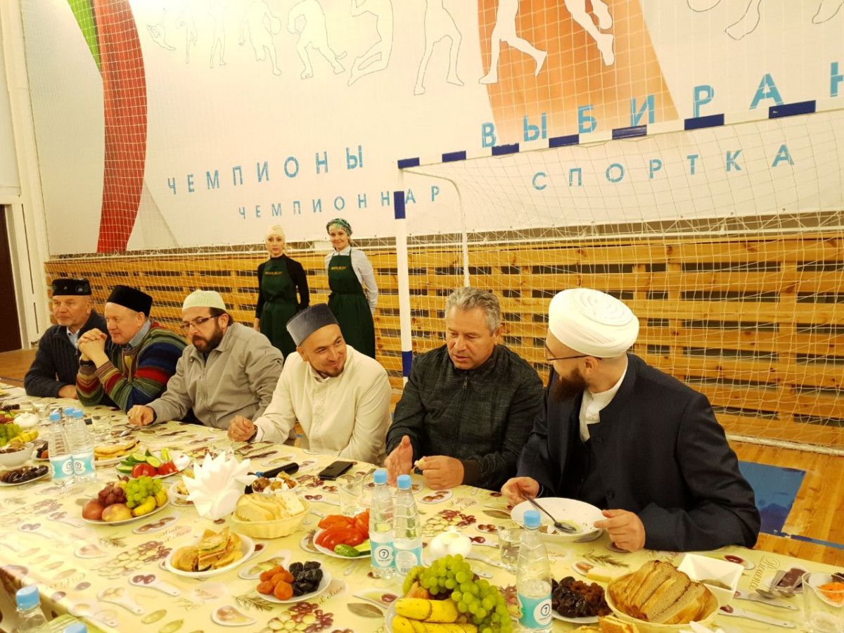 С наступлением времени разговления муфтий Камиль хазрат Самигуллин почтил своим присутствием ифтар районного масштаба, который прошел в одном из школьных спортзалов. Здесь собралось свыше полтысячи высокогорцев. Ифтар начался с чтения аятов Куръана - их также произнес Камиль хазрат.
