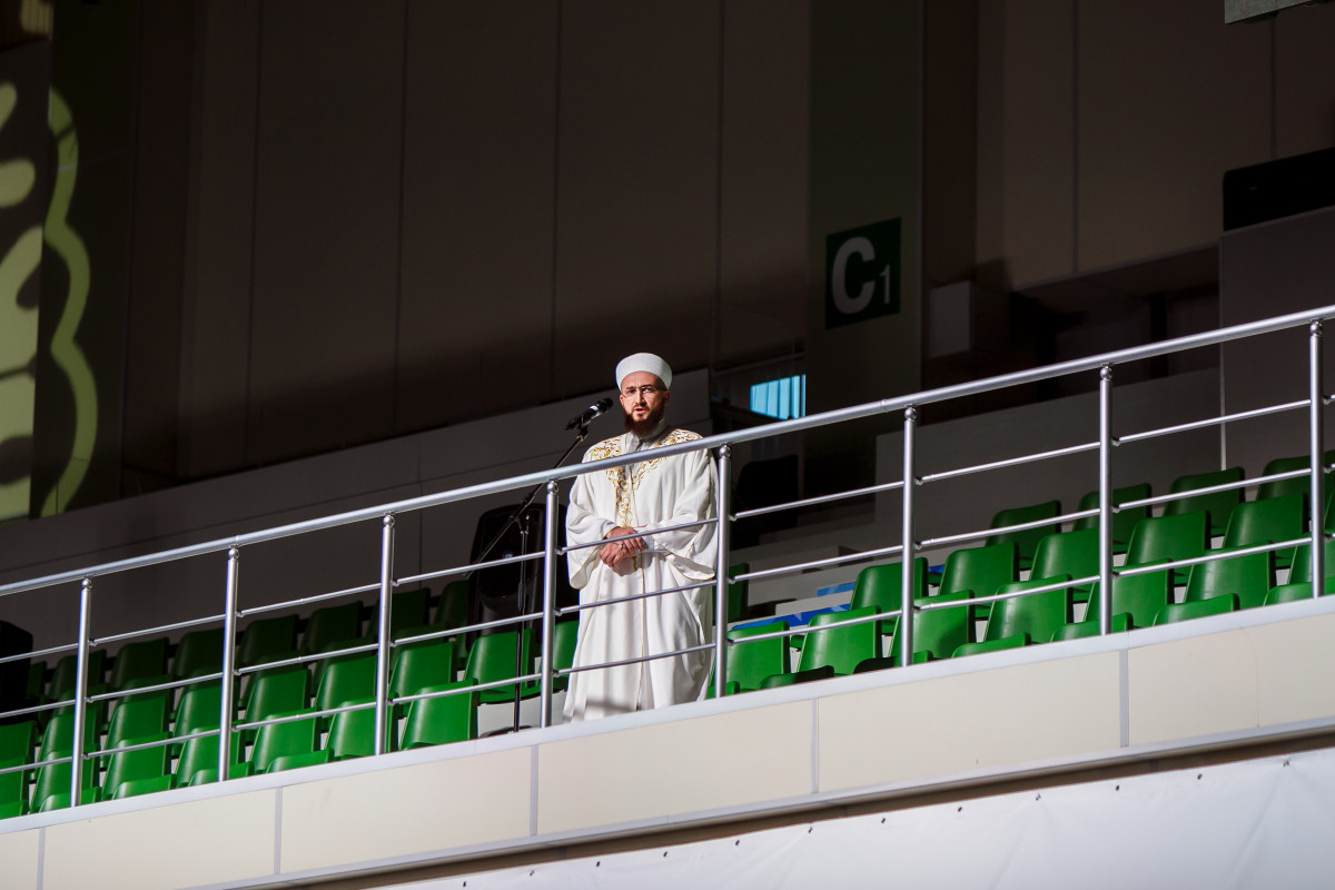 Далее с проповедью выступил заместитель муфтия РТ по работе с официальными органами Ильфар хазрат Хасанов. Он поблагодарил мусульманок, которые приехали со всех уголков Татарстана в Казань, чтобы вместе разделить радость трапезы и напомнил: "Посланник Аллаха (салляллаху ‘алейхи уа саллям) сказал: