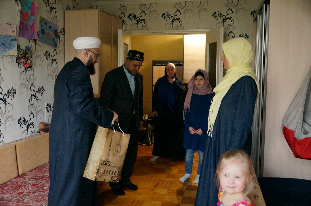 Сегодня в течение дня муфтий Татарстана Камиь хазрат Самигуллин вместе с Благотворительным фондом “Закят” ДУМ РТ навестил несколько многодетных и малоимущих семей Казани. Кроме того, в этих семьях воспитываются один или два ребенка с ограниченными физическими возможностями. В каждый дом Камиль хазрат принес гостинцы – пакеты с продуктовыми наборами.