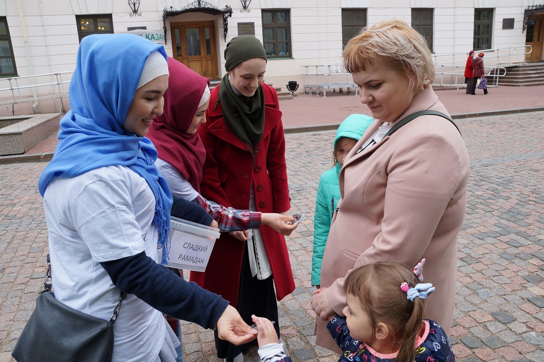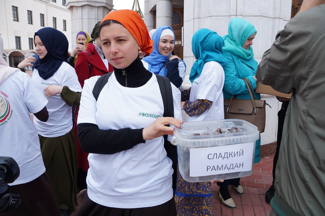 Сегодня в Благословенную пятницу в Казани прошла акция «Сладкий Рамазан». Духовное управление мусульман Татарстана провел ее с целью повышения духовного потенциала и укрепления нравственных устоев мусульманской молодежи, а также для привлечения внимания туристов и гостей Казани к достоинствам и традициям Священного месяца Рамазан и истинным ценностям религии ислама. В рамках акции волонтеры раздали главный символ «султана всех месяцев» - финики и рассказали об особенностях Рамазана и пользе соблюдения поста.