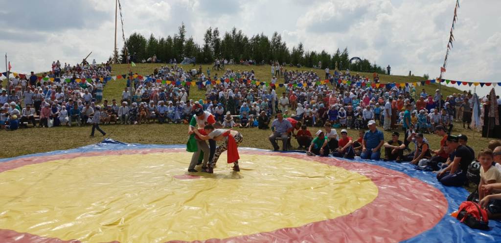 Для детей всех возрастов прошли викторины и конкурсы с ценными подарками и сладостями, а также традиционное национальное соревнование – «корэш». Самый сильный батыр получил скутер.