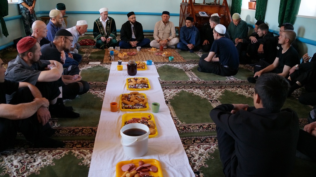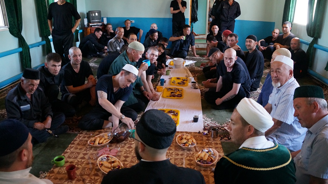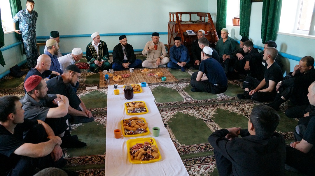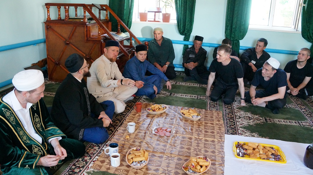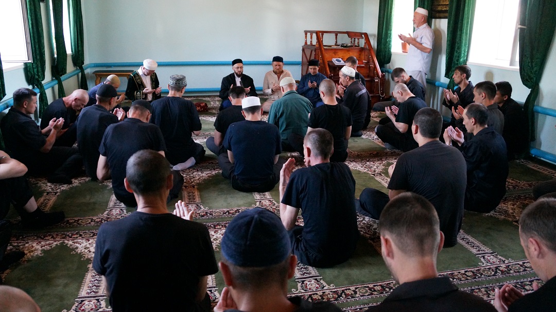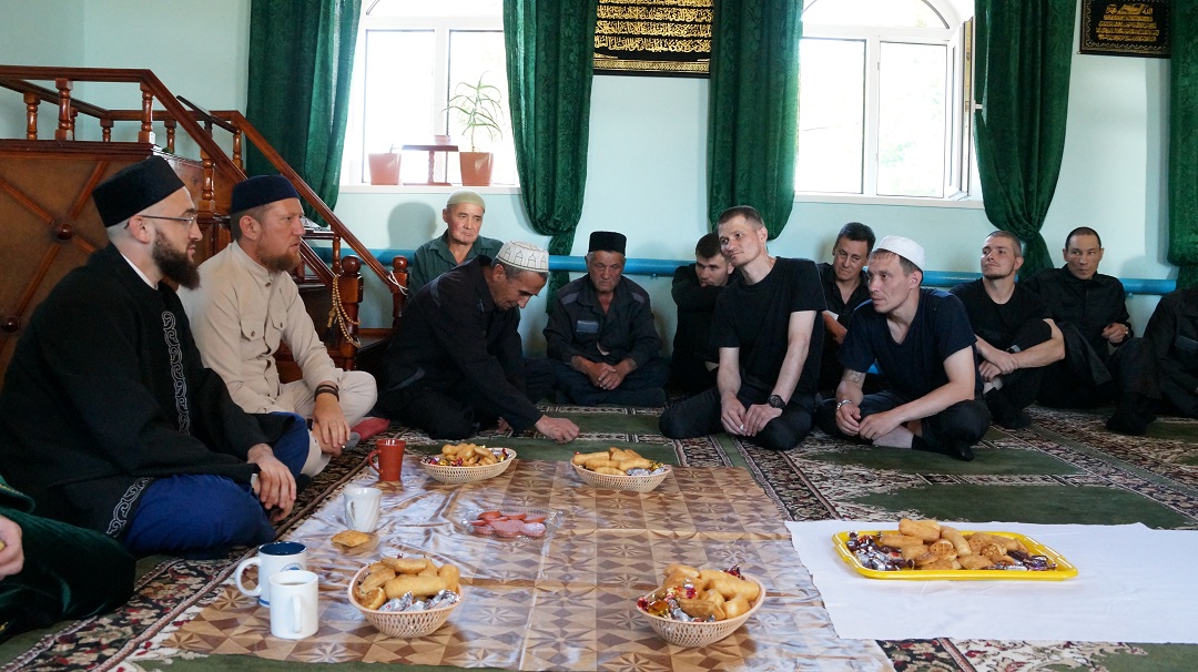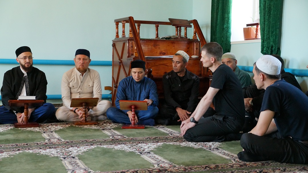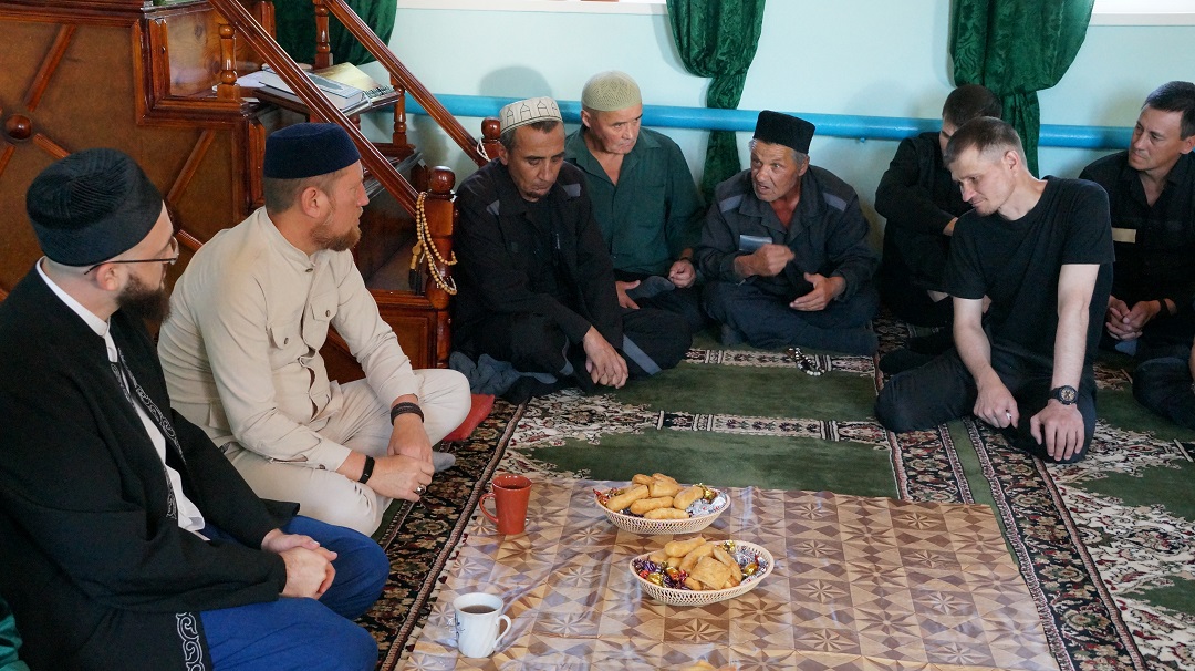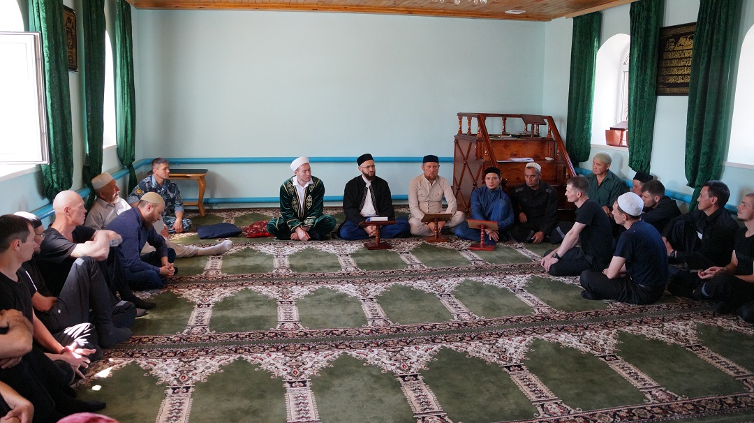 Встреча с осужденными состоялась в мечети "Юсуф" при колонии. Мечеть исправительной колонии строго режима регулярно посещают около 40 человек, а в праздники здесь коллективный намаз совершают более 70 мусульман.