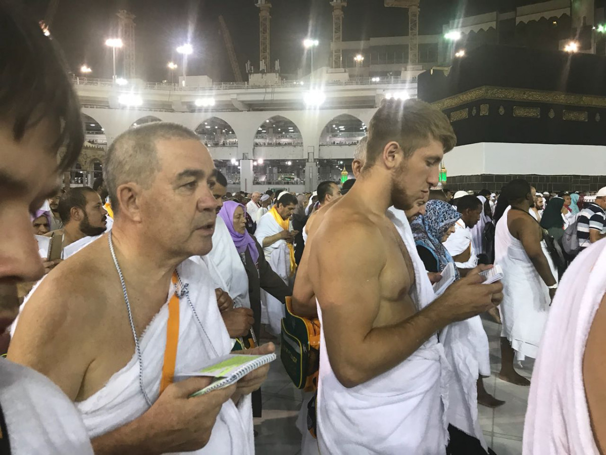 Группы паломников из Татарстана совершили умру в Саудовской Аравии. Вечером 13 августа на нескольких автобусах они добрались из Медины в Мекку. Перед совершением священного обряда паломники вошли в состояние ихрам в микате Зуль-Хулайфа.