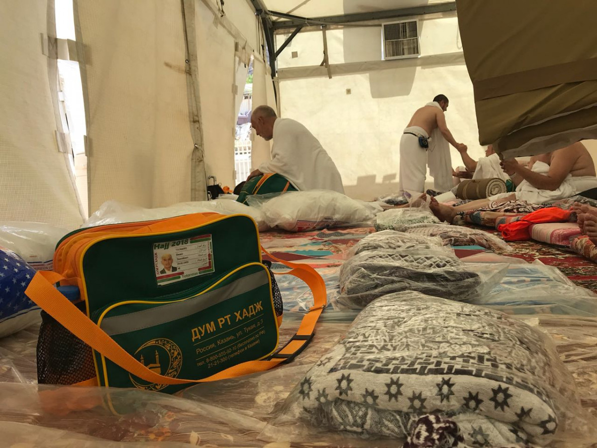 По прибытию хаджии разместились в палатках. Здесь они пробудут 4 дня. Отсюда же они продолжат свое путешествие на гору Арафат и в долину Муздалифа. 20 августа состоится кульминация Хаджа - день Арафа. Хадж считается исполненным, если провести на Арафате день в молитвах и покаянии.