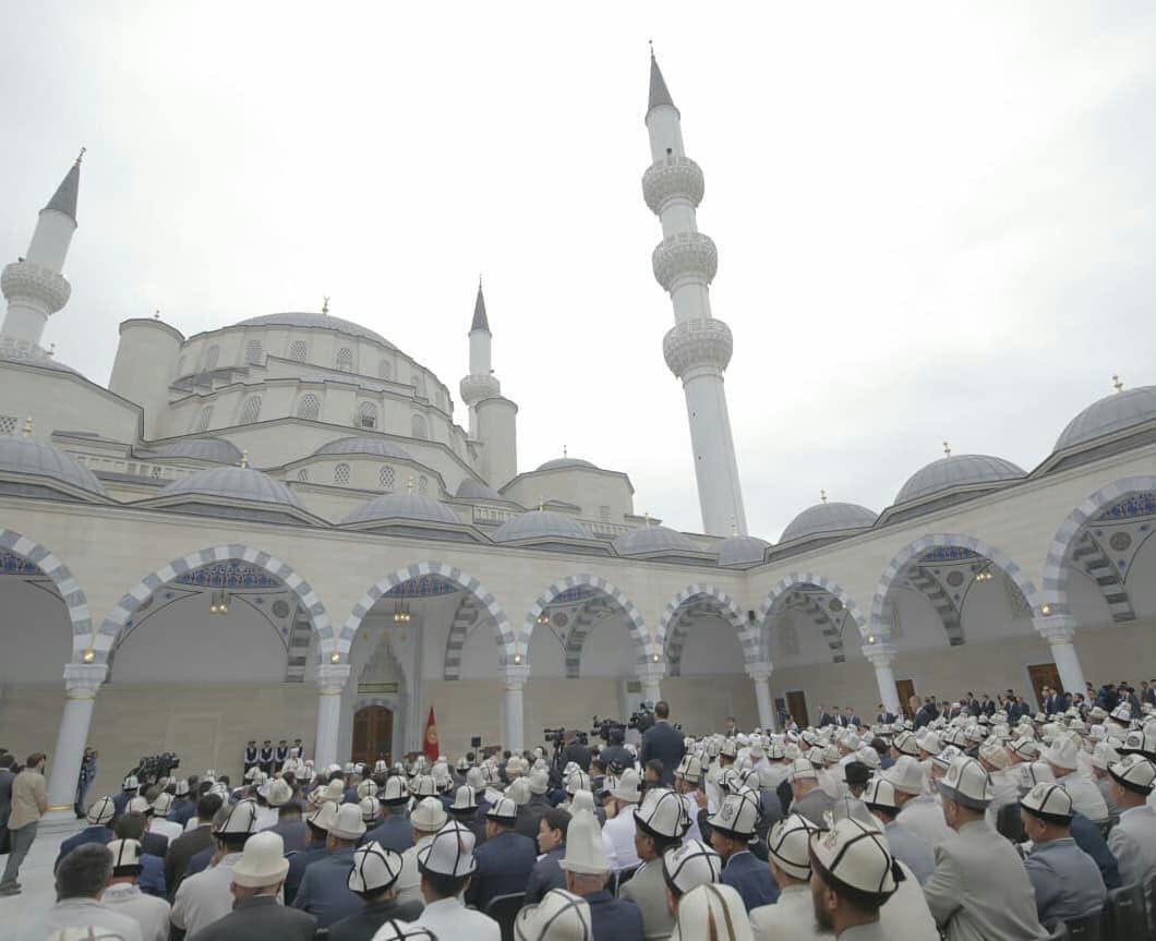 Сегодня, во второй день официального визита, муфтий Камиль хазрат Самигуллин в качестве почетного гостя принял участие в открытии новой центральной мечети Киргизии, названной в честь выдающегося Исламского ученого, сыгравшего огромную роль в установлении Ханафитского мазхаба в Средней Азии, имама Сарахси. Мечеть построена при поддержке Управления по делам религии и фондом «Диянет» Турецкой Республики. Разделить радость киргизских единоверцев от этого события в Бишкек прибыли Президент Турции Реджеп Эрдоган и Министр по делам религии Турции Али Эрбаш. Впечатляют масштабы новой мечети: она способна вместить одновременно до 20 тысяч верующих и имеет площадь вместе с прилегающей территорией 3,5 га, высота минаретов составляет 68 метров.
